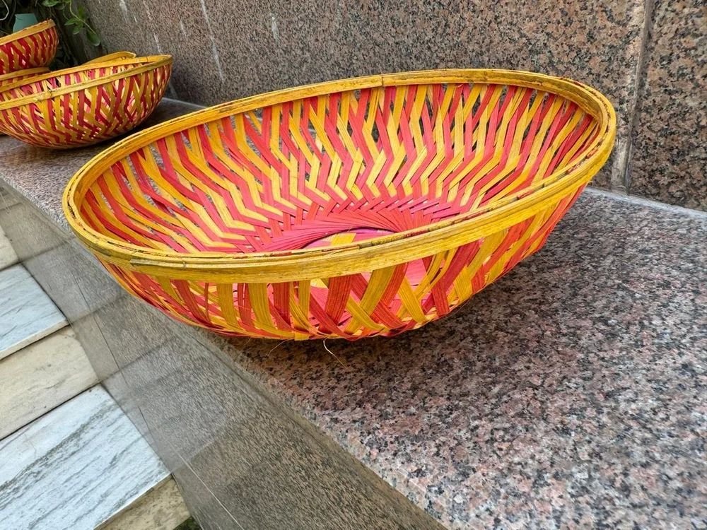 We are a leading Manufacturer, Exporter, and Supplier of high-quality Bamboo Kitchen Baskets from India. Our round-shaped, multicolor bamboo basket is a fancy addition to any kitchen, measuring 12 x 4 inches. Crafted from sustainable bamboo, this stylish basket is perfect for organizing kitchen essentials while adding a touch of elegance. Its durable construction ensures long-lasting use. Elevate your kitchen decor with this eco-friendly and versatile bamboo basket that combines functionality with aesthetic appeal.